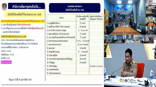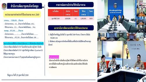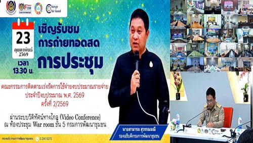 วันที่ 23 กุมภาพันธ์ 2569 เวลา 13.30 น. นายสามารถ สุวรรณมณี รองอธิบดีกรมการพัฒนาชุมชน เป็นประธานการประชุมคณะกรรมการติดตามเร่งรัดการใช้จ่ายงบประมาณรายจ่ายประจำปีงบประมาณ พ.ศ. 2569 ของกรมการพัฒนาชุมชน ครั้งที่ 2/2569 โดยมีผู้บริหารกรมการพัฒนาชุมชน และเจ้าหน้าที่ที่เกี่ยวข้องเข้าร่วมประชุม เพื่อติดตามผลการดำเนินงานและเร่งรัดการใช้จ่ายงบประมาณให้เป็นไปตามเป้าหมายของรัฐบาล
