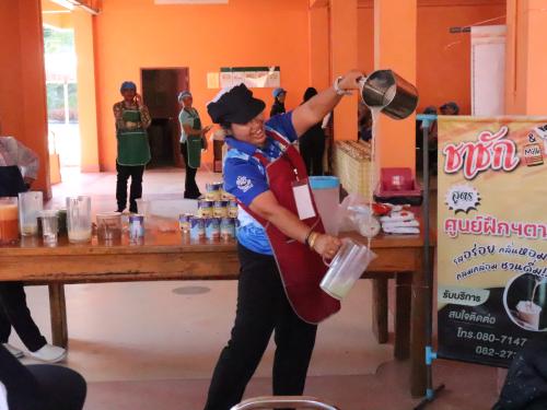 (ภาคบ่าย) กิจกรรมฝึกอาชีพเพื่อสร้างโอกาสการมีรายได้เพิ่ม โดยผู้เข้าร่วมโครงการได้เรียนรู้การทำ ยาหม่องสมุนไพร ซึ่งเป็นผลิตภัณฑ์จากภูมิปัญญาท้องถิ่นที่สามารถต่อยอดเป็นอาชีพเสริมและสร้างรายได้ให้กับครัวเรือน พร้อมด้วยการเรียนรู้และฝึกปฏิบัติการทำชาชัก ซึ่งเป็นอีกหนึ่งทักษะอาชีพที่สามารถนำไปประยุกต์ใช้ในการประกอบอาชีพหรือสร้างรายได้เสริมในชุมชนได้