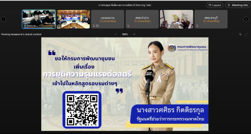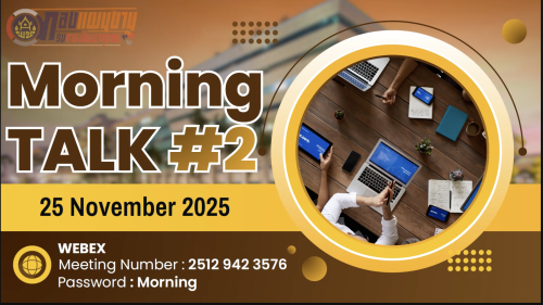 วันอังคารที่ 25 พฤศจิกายน 2568 นายวัชระ ธรรมปัญญาสกุล ผู้ตรวจราชการกรม ปฏิบัติหน้าที่ผู้อำนวยการศูนย์ศึกษาและพัฒนาชุมชนยะลา ร่วมประชุมหารือข้อราชการรายสัปดาห์ (Morning Talk) ครั้งที่ 2/2568 ผ่านระบบ Webex ณ ห้องปฏิบัติงานศูนย์ศึกษาและพัฒนาชุมชนยะลา โดยมีนายอาทร พิมชะนก ผู้อำนวยการศูนย์สารสนเทศเพื่อการพัฒนาชุมชน เป็นประธานการประชุมฯ พร้อมด้วยผู้ตรวจราชการกรม ผู้อำนวยการ สำนัก กอง ศูนย์ และผู้แทนหัวหน้าหน่วยงานในสังกัด