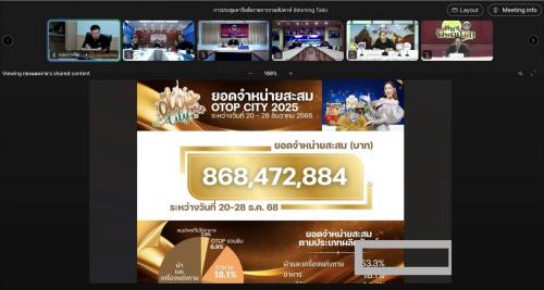 - งาน OTOP City 2025 ที่จัดขึ้นระหว่างวันที่ 20-28 ธันวาคม 2568 ประสบความสำเร็จอย่างสูง โดยมียอดจำหน่ายสะสมรวมทั้งสิ้น 868,472,884 บาท โดย จังหวัดสุรินทร์ ครองแชมป์จังหวัดที่มียอดจำหน่ายสูงสุดในงาน